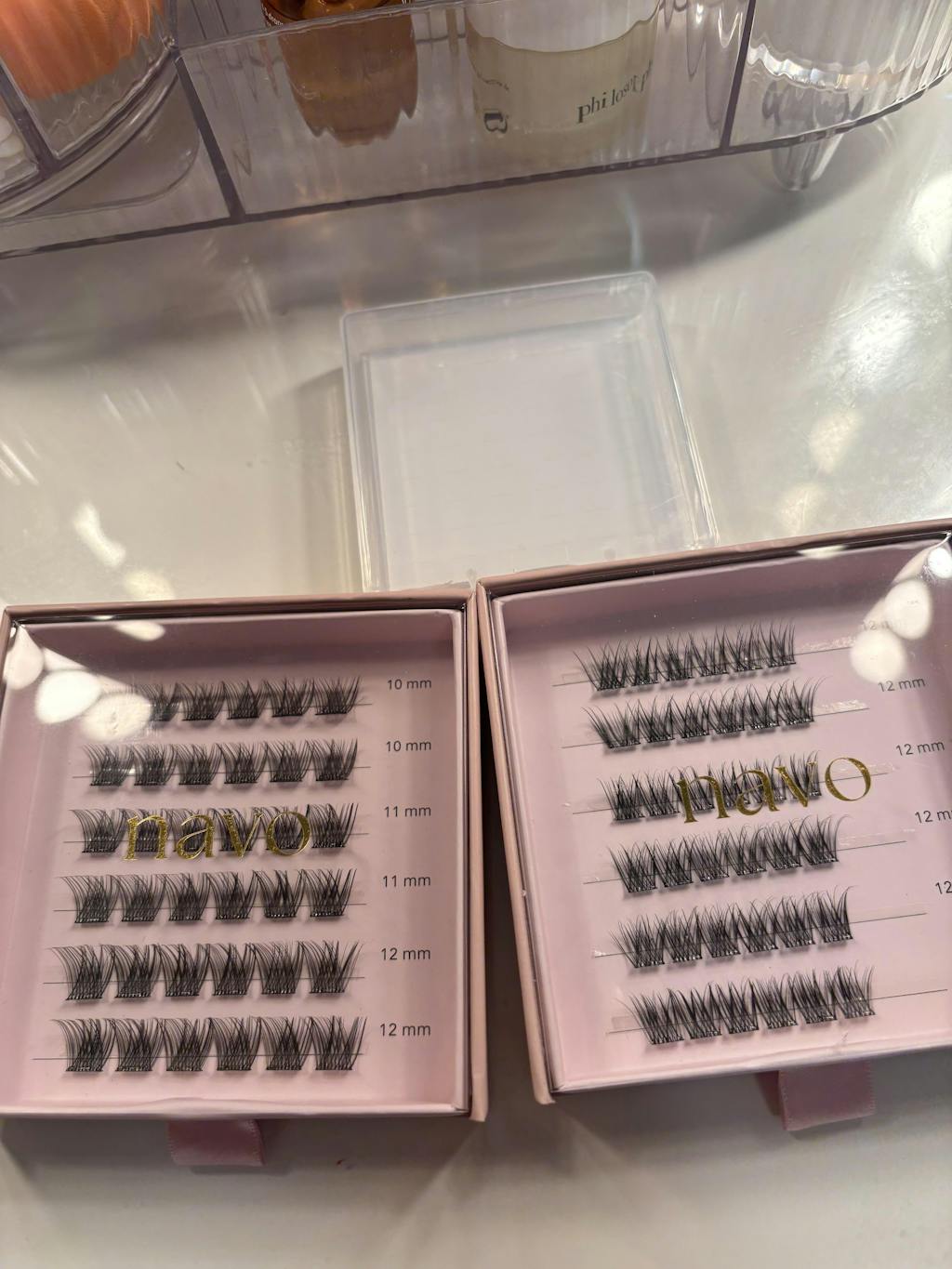 Still getting used to Navo lashes but I am really liking them. I find the hardest part is where to put them when I am not wearing them. I have had a few lashes rip apart quicker than I had hoped but again, this might improve with practice of removing the old glue